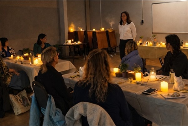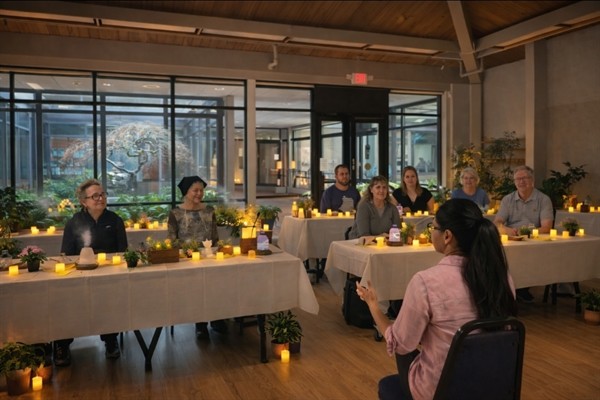 We come to you. Before your team arrives, we transform your space. Intentional lighting, curated music, scent, and breathwork create an environment your team has never walked into before. The moment they enter, something shifts.
